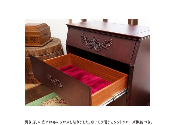 | 引出し内寸 | 上段・幅715×奥行370×高さ210mm 下段・幅715×奥行370×高さ280mm (下段は七寸骨壺が4個収納可能) |